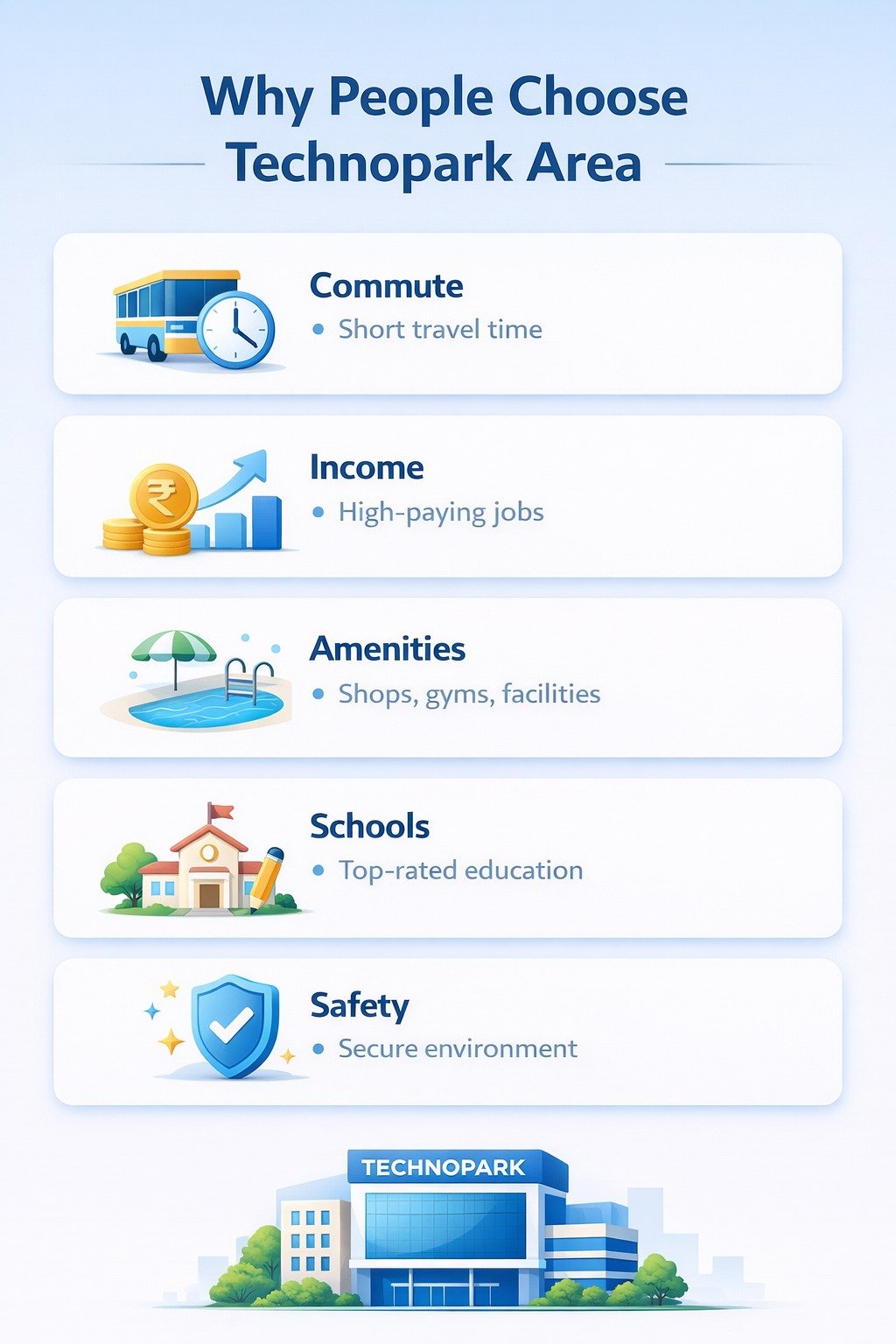 have become some of the most sought-after real estate zones in the city. Villas and apartments near Technopark consistently attract strong buyer and rental interest, and the reasons extend well beyond proximity alone.